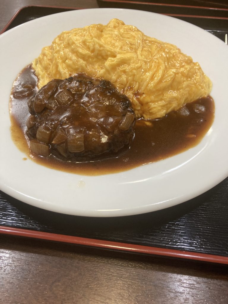 私はオムライスのデミハンバーグのせを注文!意外にもご飯の量が多く、大満足でした。夫が言ってたけどこのハンバーグ、中にレバーが入っているような。。だそうです。私はさほど気になりませんでしたが、コクを出すのに入れてるのかも。言われてみればフワッと味を感じました。苦手な人はご注意を!!